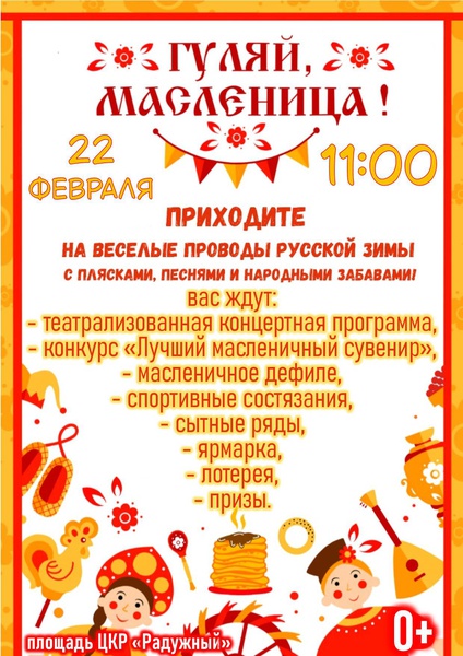 Мы с нетерпением ждем вас, чтобы вместе встретить этот яркий и всеми любимый праздник, наполненный смехом, музыкой и, конечно же, ароматными блинами.